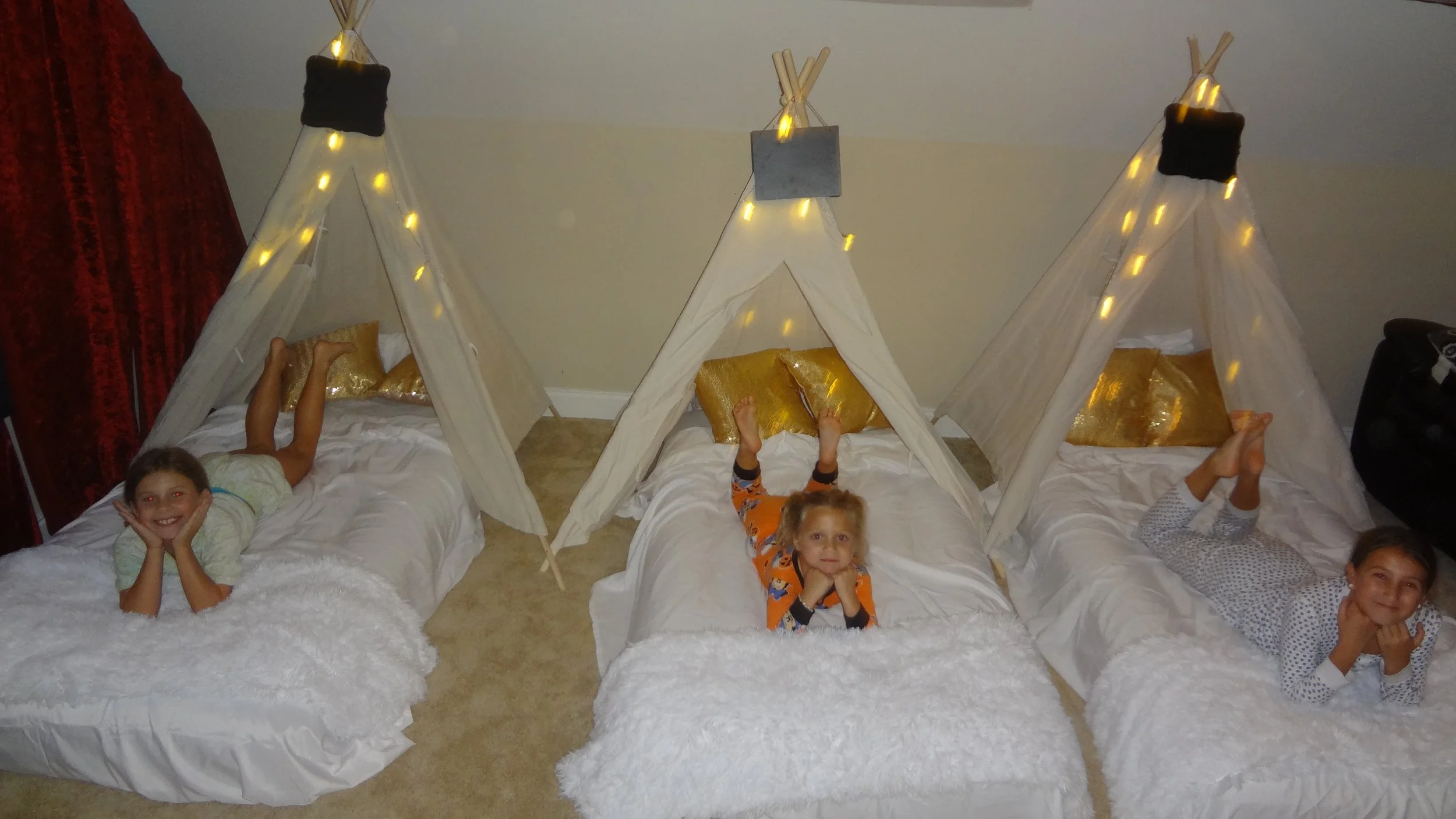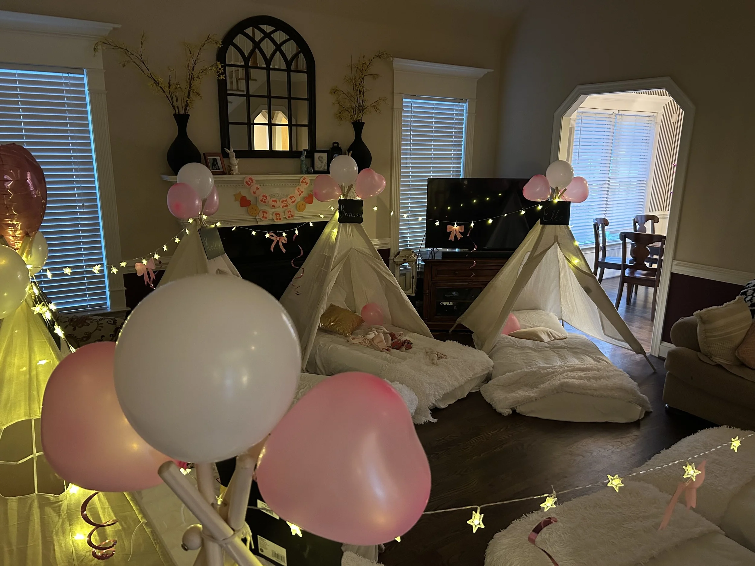 Starry Night Slumber Parties , the ultimate sleepover experience for children! We specialize in enchanting teepee tent setups that transform ordinary nights into extraordinary adventures. Our beautifully designed tents come complete with cozy bedding, fairy lights, and fun themes, making every sleepover a magical event. We are available for birthday parties, providing stress-free experience for parents and unforgettable memories for kids. With our customization packages and attentive service, we bring the joy of imaginative play right to your home. Let us create a whimsical world where dreams come alive!